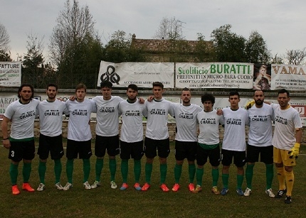 SERVIGLIANO. Je suis Charlie, il motto che ricorda i terribili eventi accaduti in Francia nei giorni scorsi è stato fatto proprio da tutta la società del San Marco Servigliano, dai calciatori e dall'intera cittadinanza, in primis dal Sindaco Rotoni. All'inizio della gara contro il Montefano, la squadra è scesa in campo con una maglietta che riportava la frase "JE SUIS CHARLIE". Una manifestazione che vuole onorare le vittime e testimoniare la volontà di non abbassare la testa con rassegnazione di fronte ad eventi tanto tristi che segnano la vita di tutti noi.