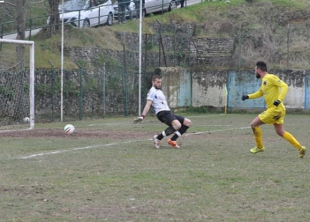 Nella foto di Fabrizio Ottavi la rete di Cardinali contro il Monsampietro
