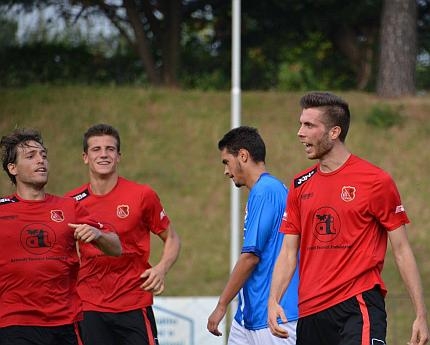 FABRIANO CERRETO. Tre gol alla Sangiustese, cinque fuori casa al Fossombrone. Due gare, 6 punti, un solo gol subito. Dopo le prime due giornate di campionato il Fabriano Cerreto (nella foto l'esultanza di Jachetta e compagni contro il Fossombrone) sta dimostrando tutta la sua forza. Sarà una stagione facile facile per i cartai? "La squadra è stata costruita per fare bene e disputare una stagione da vertice - spiega il tecnico Nicola Spuri Forotti (foto) - ma sappiamo bene che non sarà tutto facile perchè penso che questo sarà un campionato molto equilibrato e difficile". Una prova? "Nel primo tempo la velocità e l'aggressività del Fossombrone ci hanno messo in difficoltà".