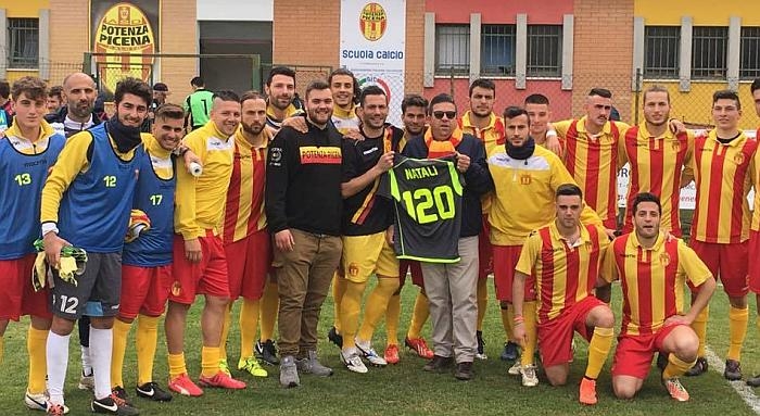 POTENZA PICENA. Gli ultras del Potenza Picena hanno premiato il portiere Rudy Natali per le 120 presenze in maglia giallorossa prima dell'ultima partita di campionato con la Futura '96. Un segno di riconoscenza verso un giocatore simbolo della squadra.