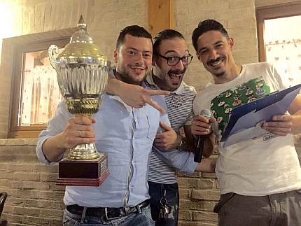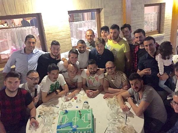 Vai alla galleriaMONSAMPIETRO MORICO. Si è svolta venerdi scorso presso il ristorante Villa Montotto di Monterubbiano la cena, offerta dallo sponsor BMB, della società del Monsampietro Morico. Alla presenza del patron Vermiglio Bartomioli e del vice presidente Roberto Bartomioli con le rispettive consorti, Signore Rita e Sara, si è festeggiata la salvezza ottenuta nei playout contro la Cuprense. E' stata una serata molto divertente, nel corso della quale la protagonista assoluta è stata l'allegria, tanti i cori e i brindisi in onore dei calciatori e delle speciali premiazioni ideate dal capitano Fabio De Carlonis e dal vice capitano Cristian Recchioni. Con trascinante entusiasmo e tanta ironia, sono riusciti a cogliere le peculiarità di ogni giocatore e di ogni singolo dirigente.
