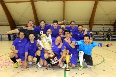 Marcelli, 10 giugno 2017: Rispettivamente, nello stesso girone finiva quarto il 3P United (foto) e sesto il P&G. Dopo le “regular season” le due compagini sono sempre cresciute nelle fasi finali arrivando e dando vita ad una finale davvero bella e strameritata per entrambe. I bianco verdi di Recanati, giovani ma concreti, hanno subito messo in campo delle accortezze tecniche consci delle forti individualità potentine. Allo start il P&G meriterebbe di andare in vantaggio per la tanta corsa e il tanto cercare lo specchio della porta. Al 5’ va invece in rete il 3P con Micucci che tocca sotto porta. Dopo tanti bei giri palla e conclusioni dalla distanza, al pareggio ci si arriva con un retro tocco involontario di De Sousa al 15’. Rifrancato il P&G Recanati spinge e al 23’ su lancio di Riccetti, Spinaci spizzica di testa quel tanto che basta per eludere l’uscita di Norscini. La ripresa passa ancor di più per i piedi del brasiliano De Sousa che con un tiro dalla destra pareggia al 1’s.t. Scende l’entusiasmo dei recanatesi che si affidano allora alle geometrie di Luca Mandolini. Al 10’s.t Micucci realizza la sua 23^ realizzazione tra campionato e fasi finali. Il P&G torna ad essere “registrato” e meriterebbe il pareggio che arriva solo allo scadere con Valentini. Si va ai tempi supplementari. Al 1’ e al 4’ Fringuelli e soci non approfittano di due tiri liberi, cosa che invece fa De Sousa al 4’ del secondo tempo supplementare regalando il primo trofeo alla 3P United. Doppia felicità per De Sousa che viene anche eletto “ man of the match” .