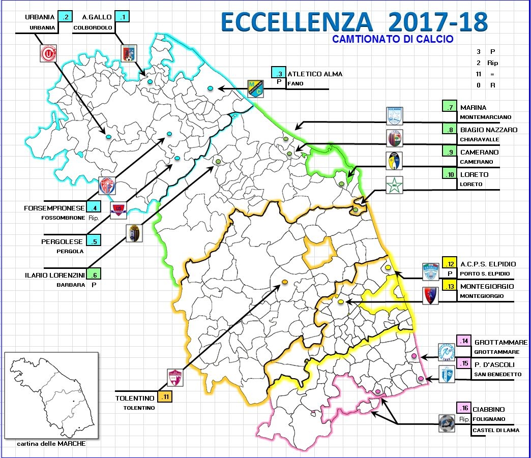 La geografia del calcio marchigiano dall'Eccellenza alla 1^ categoria
