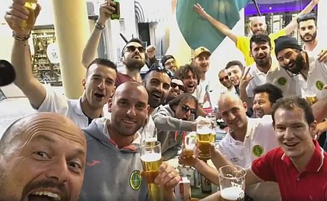 Tutta la squadra ha festeggiato la promozione con un mega aperitivo e poi con una cena al ristorante di Gradara "Rocca d'A...mare" e una magnum di 6 litri.