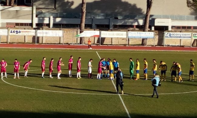 Tolentino: Rossi, Viola, Cerolini (47'st Marcantoni), Laborie, Severoni (34'st Bonacchi), Strano, Mastromonaco, Olivieri, Tirabassi (5'st Minnozzi), Di Domenicantonio (44'st Maresca), Pagliari (1'st Ruci). A disp. Giachetta, Labriola, Ruggeri, Stefoni. All. Andrea Mosconi