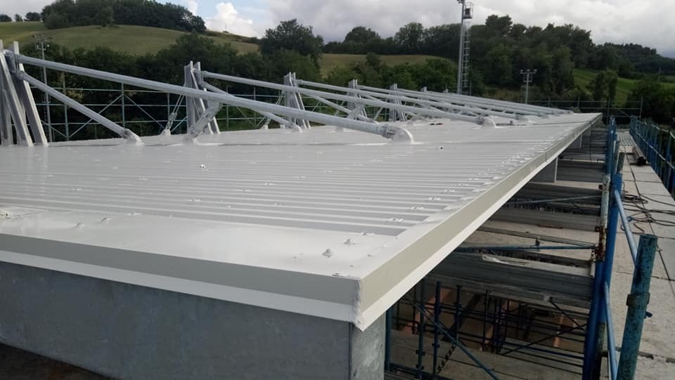 Vai alla galleriaPESARO. Una chicca per il Santa Veneranda e i suoi sostenitori. La società arancionera ha infatti comunicato sui propri canali social che i lavori per la nuova copertura della tribuna sono quasi giunti al termine. L'opera, che era iniziata all'inizio di febbraio, renderà sicuramente più confortevole ed efficiente l'impianto sportivo per giocatori, staff e soprattutto i tifosi in vista della nuova stagione agonistica.