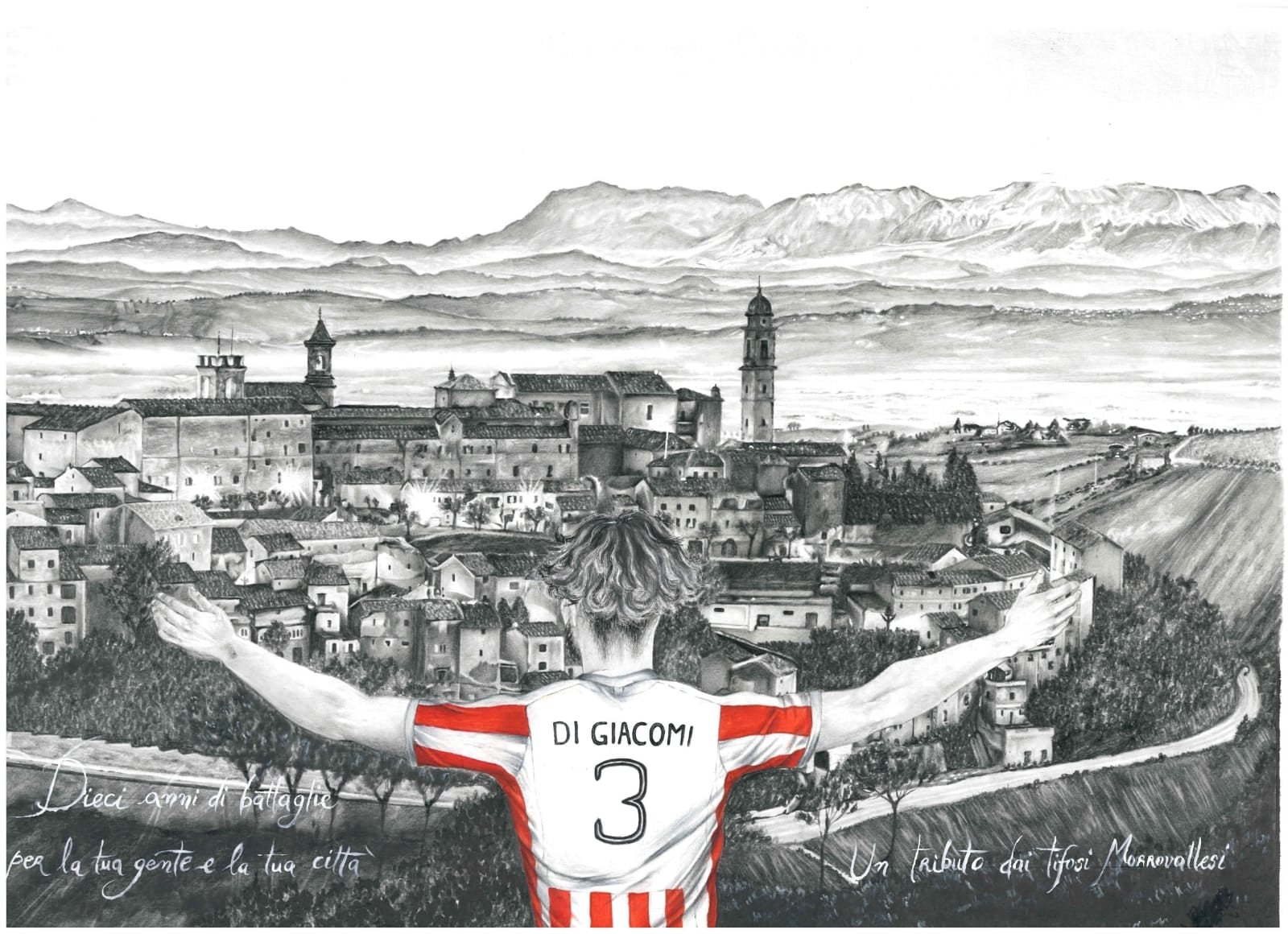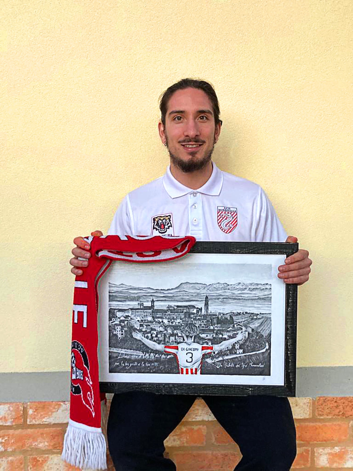 Una menzione speciale per Luca Scoponi, Francesco Sopranzi, i fratelli Mirko e Gianluca Del Medico, Emiliano Dalloro, Francesco Flamini, Alessandro Corallini, Alessandro Emiliani, Giovanni Torresi, Manuel Marini: tutti compagni di squadra più grandi che mi hanno fatto crescere calcisticamente e caratterialmente. Vorrei ringraziare prima di tutto l’artista Martina Sopranzi, autrice del quadro: appena l’ho visto non potevo credere alla sua bellezza; un caloroso abbraccio, poi, a tutte le persone che hanno contribuito alla realizzazione di questo regalo.