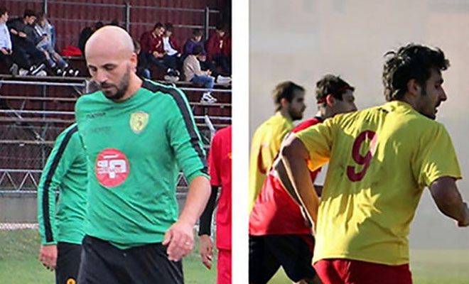 Nelle foto: Paolo Rocchetti (difensore del Monte Cerignone) e Francesco Tassi (attaccante della Vadese)