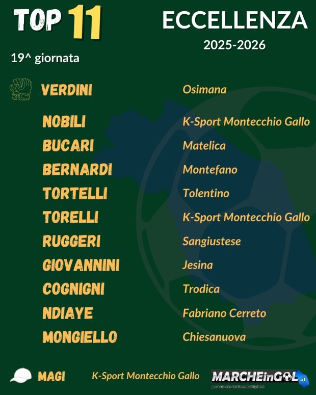 ECCELLENZA. La TOP 11 della 19^ giornata