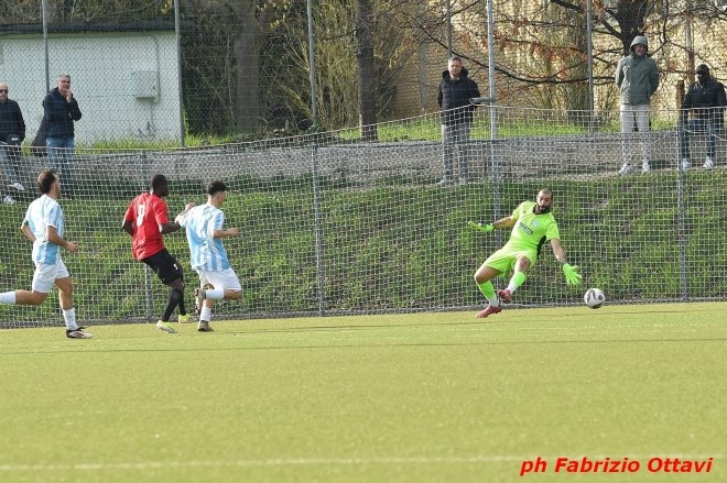La gara poi si equilibra: al 32’ Kane calcia in porta ma Beni para e al 35’ Hoxholli manca il raddoppio calciando fuori. Al 37’ Loretucci del Grottammare trova una deviazione in angolo. Al 38’ un’uscita a vuoto di Luzi non provoca conseguenza per i padroni di casa ma chiude con il brivido la prima frazione di gioco.
