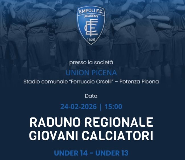 POTENZA PICENA. Martedì 24 febbraio 2026, alle ore 15:00, il Campo Sportivo “Ferruccio Orselli” sarà teatro del Raduno Regionale Giovani Calciatori, un evento di grande rilievo organizzato dalla società Union Picena per conto della prestigiosa Empoli FC.