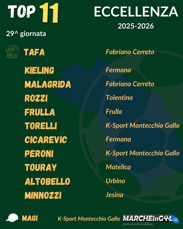 ECCELLENZA. La TOP 11 della 29^ giornata