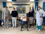 ANCONA. Il Direttore Generale dell’Azienda Ospedaliero - Universitaria di Ancona ha ricevuto la graditissima visita di Paolino Giampaoli, il paziente 1, che fu ricoverato per primo a febbraio con la diagnosi di polmonite interstiziale da Covid, dimesso guarito dopo un mese di ospedale e oggi tornato a pieno ritmo alle sue attività ordinarie. Il paziente 1, celeberrimo tifoso dell’Ancona Calcio, ha promosso e realizzato nelle scorse settimane una raccolta di fondi a favore delle Malattie Infettive dell’ospedale di Torrette, raggiungendo la ragguardevole cifra di oltre 3200 euro. Durante la visita presso l’aula Tosolini della direzione generale, il DG Caporossi ha preannunciato a Paolino che è sua intenzione designarlo, in occasione della Festa di fine A...leggi11/05/2020, La Redazione ,
