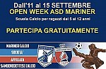 SAN BENEDETTO DEL TRONTO. E' iniziato ieri e proseguirà fino a venerdì 15 settembre l'Open Week della Scuola Calcio della società Mariner, affiliata alla Sambenedettese. La prova è per i ragazzi dai 5 ai 12 anni. Oggi (martedì) e giovedì in campo per la prova gratuita con tecnici e preparatori atletici qualificati presso il campo Merlini a San Benedetto del Tronto.