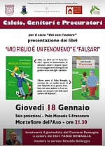 MONTEFIORE DELL'ASO. Interessante iniziativa organizzata dalla Polisportiva Montefiore che giovedi 18 Gennaio alle ore 21,30 avrà come gradito ospite, presso il Polo Museale San Francesco, il giornalista Fabio Benaglia. L'autore presenterà due suoi libri, entrambi dedicati al mondo del calcio giovanile, dal titolo assolutamente evocativo: "Mio figlio è un fenomeno" e "Falsari". Due produzioni che descrivono un maniera puntuale vizi, virtù e stravaganze di genitori, calciatori, procuratori e di tutto il mondo che gira attorno allo sport più amato e seguito nel nostro paese. ...leggi12/01/2018, La Redazione , PRIMO PIANO